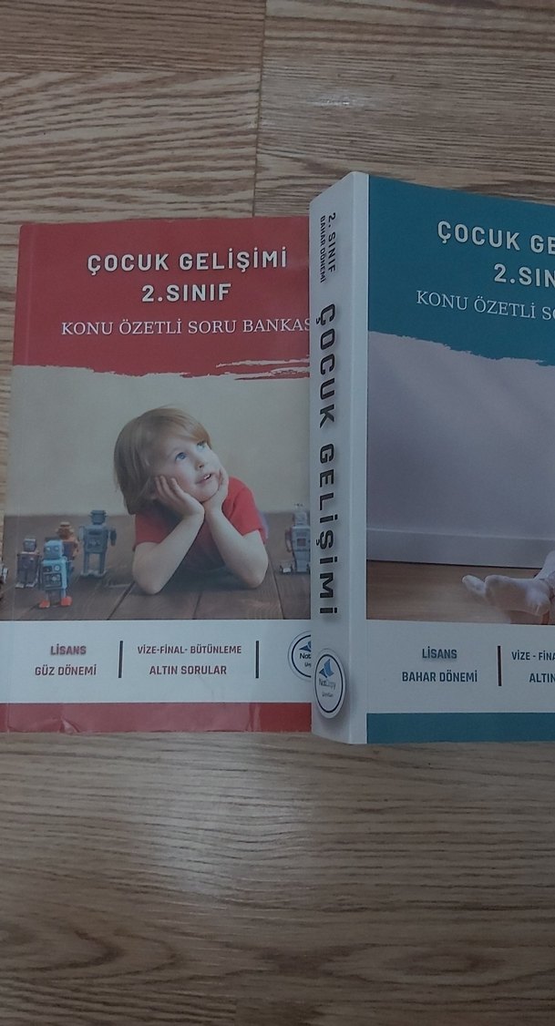 Auzef 2. sınıf çocuk gelişimi bölümü özetli soru bankaları, güz ve bahar dönemine ait 2 kitap. Kısa özetler, altın sorular ve deneme sınavları içerir. Geçme garantili Notcopy yayınlarına aittir. Üzeri işaretlenmiştir.