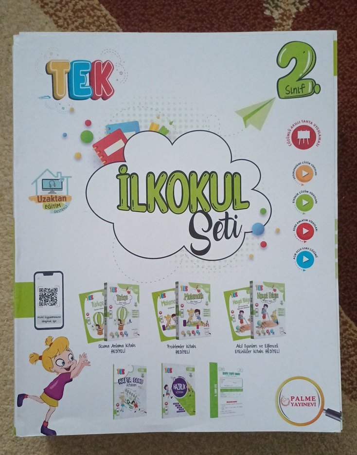 2. sınıf için Palme Yayınları'ndan uzaktan eğitim destekli ilkokul seti. Fen, matematik ve Türkçe kitapları içerir. setin içinde yalnızca okuma anlama kitabi eksiktir. yerine baska bir okuma anlama hediye kitap gönderilecektir.