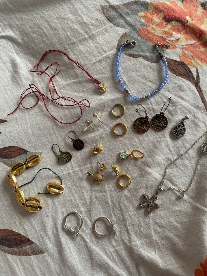 Bohem tarzda, açık altın tonlarında boncuklu ve nakışlı çocuk takıları. Retro ve hippie havası taşıyan küpeler, kolyeler ve bileklikler.