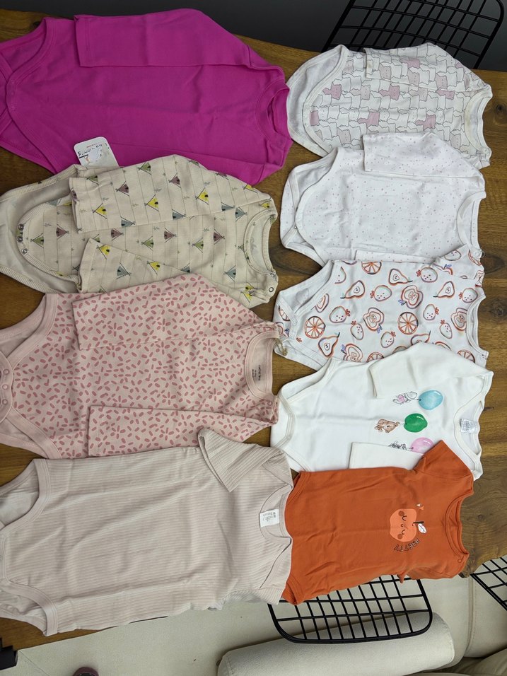 Üsttekiler sağdan 2. Beyaz hariç diğerleri kullanılmıştır. Çok iyi durumdadır. Bi kaç hafif keke vardır o kadar fotoğraflardan bakabilirsiniz. Alt kısımda olanlar hiç kullanılmamıştır. 12-18 ve 18-24 vardır.1 tane sonda 3 yaş vardır.Farklı markalardır. 9 adettir.