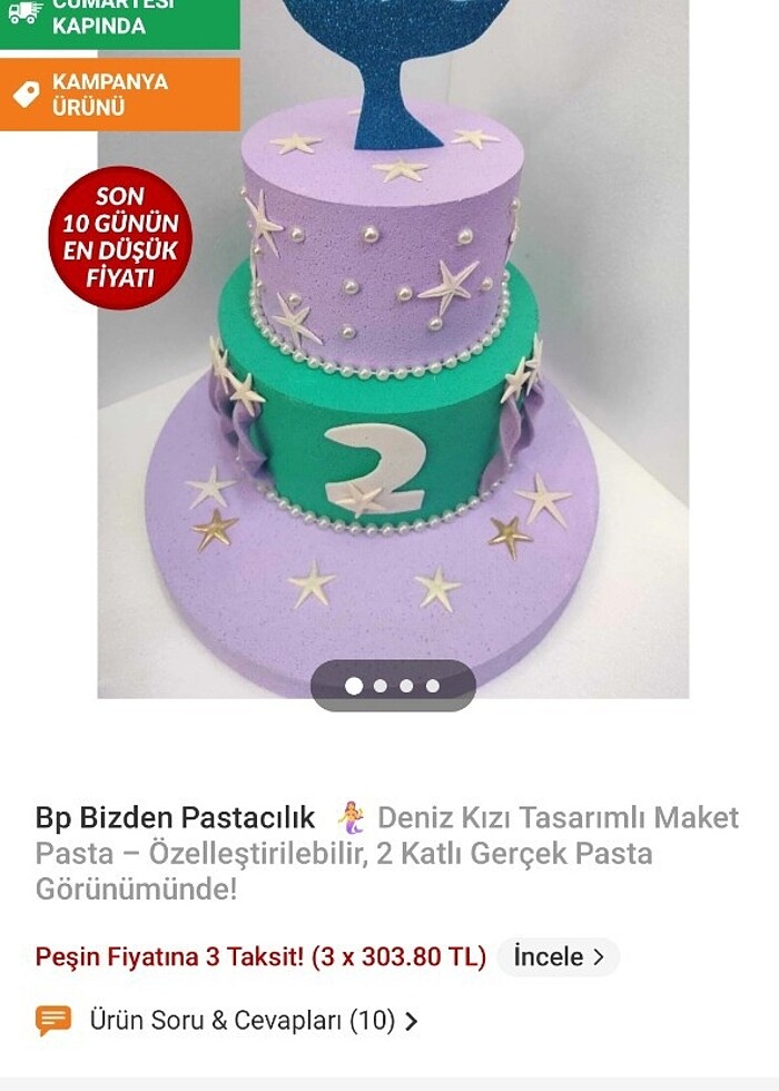 Deniz kızı konsepti için 2 yaş doğum günü maket pastası çok temiz 2 saat kullanılmıştır orjinal fiyatı ektedir çok uyguna veriyorum