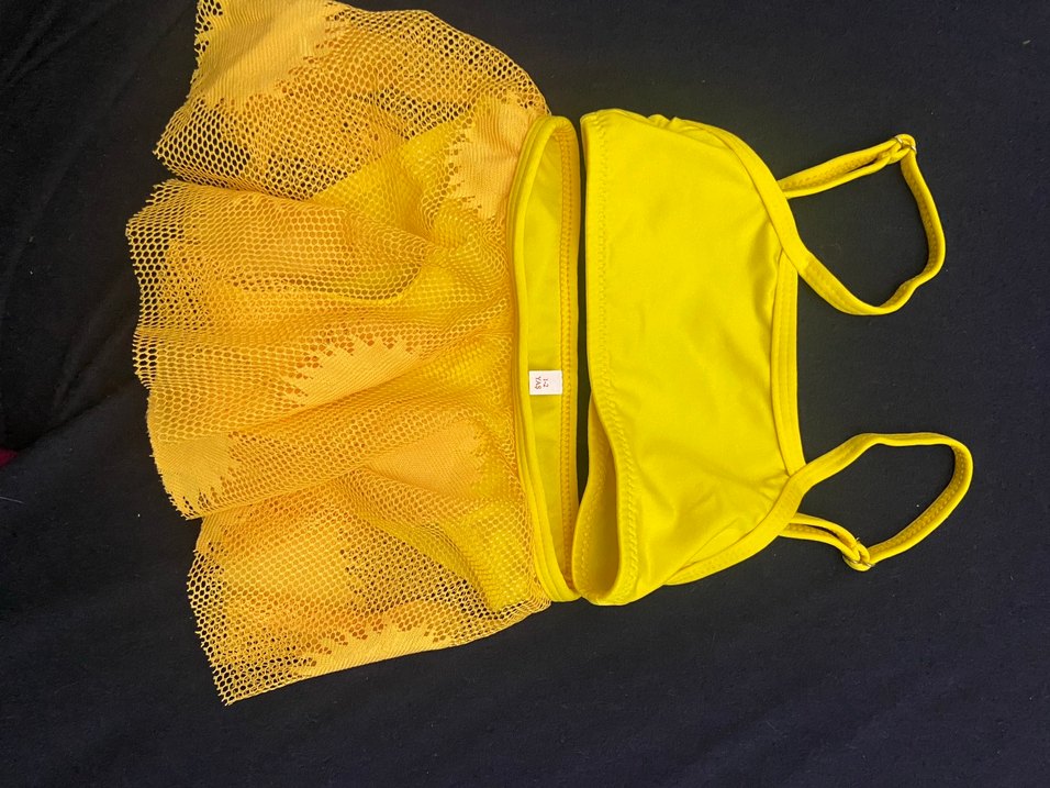Nefes alabilir file kumaş ve ayarlanabilir askılarla rahat taşıma sağlayan sarı bebek taşıma askısı.