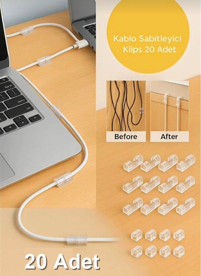 20 adet camel renkli kablo sabitleyici klips seti. Kabloları düzenler ve karışmasını önler.
