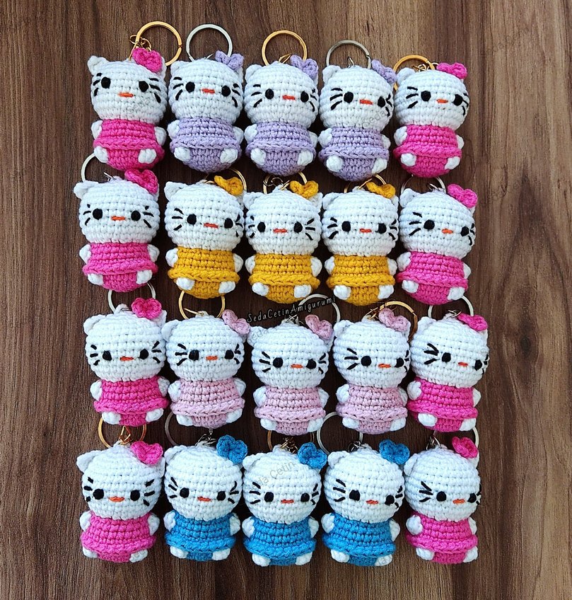 20 Adet Hello Kitty Anahtarlık Örgü Kedi Amigurumi Toptan