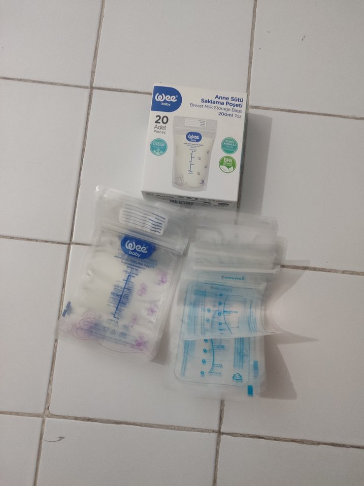 20'li pakette, 200 ml kapasiteli beyaz anne sütü saklama poşetleri. Güvenli ve hijyenik süt saklama için uygundur.