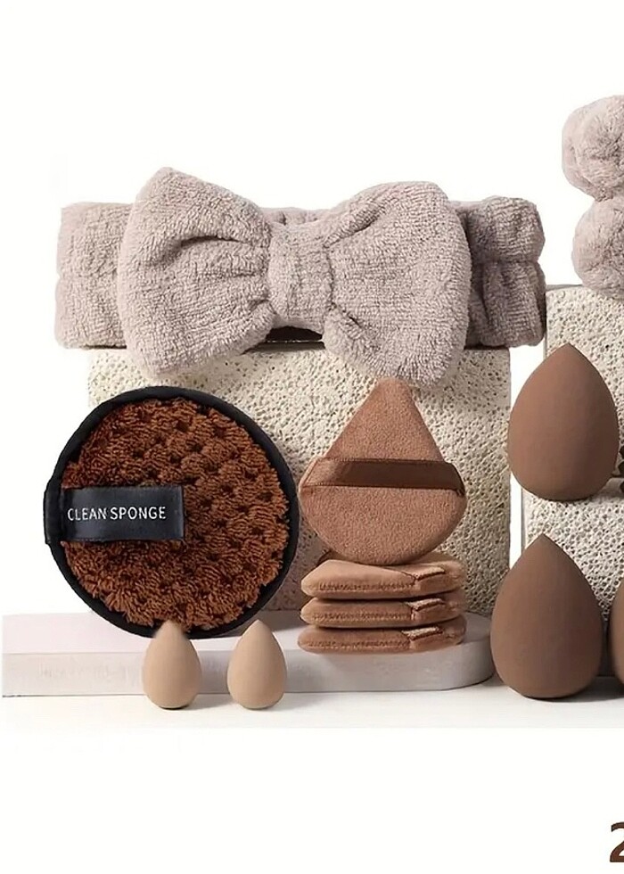 Çeşitli Özelliklerde 20Parça Makyaj Seti. Büyük Set İçerir ( 1 Baş Bantı + 2 Bileklik + 1 Makyaj Temizleyici Püsküllü + 4 Üçgen Velur Püsküllü + 4 Parmak Püsküllü + 4 Büyük Sünger + 4 Küçük sünger