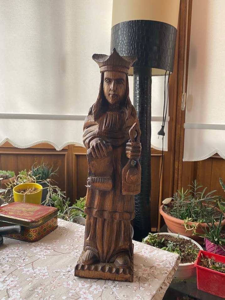 20.yüzyıl masif ahşaptan el oyması din adamı figürü.