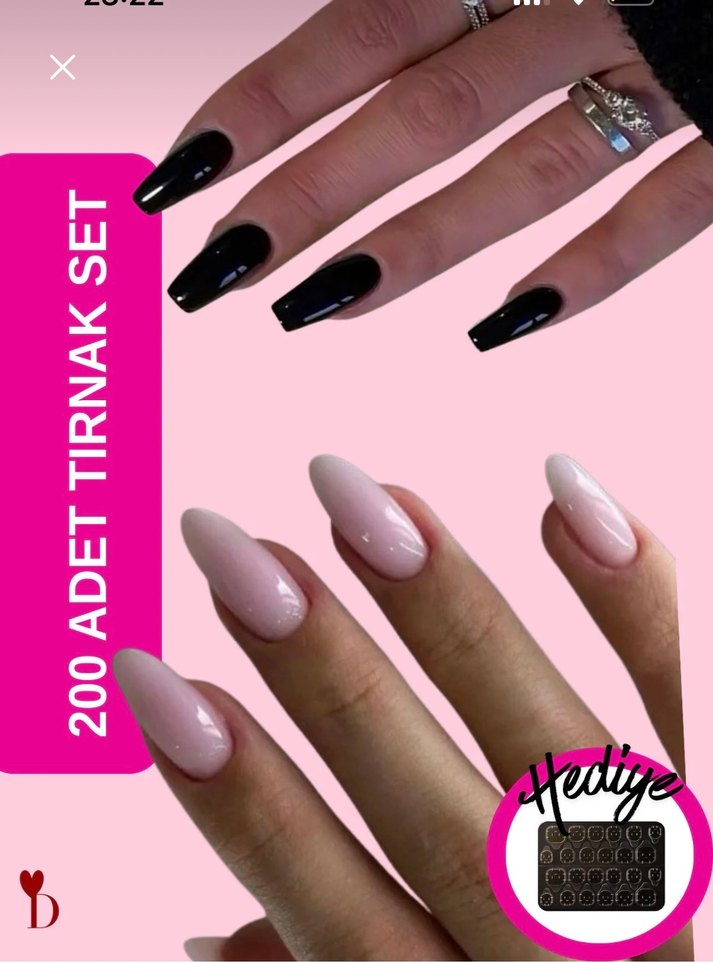 Tırnak görünümünü güzelleştirmek için 200 adet siyah tırnak süslemesi seti. Ekstra stil için hediye aksesuar dahil.