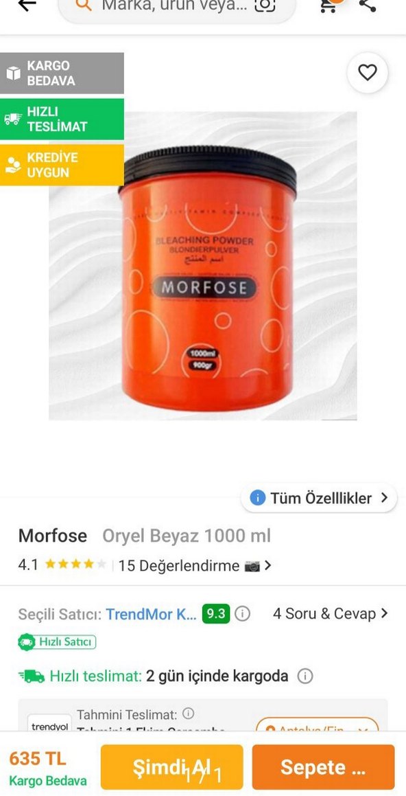 200 gram Morfose Oryel Beyaz Saç Açıcı Toz. Son kullanma tarihi 2026'dır. Ölçü kaşığı ile 22 kaşık gelmektedir.