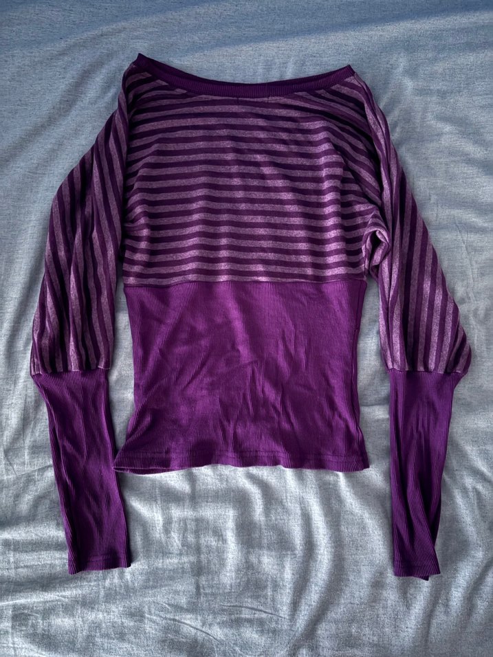 Çok hoş bir modeli var, belden sarıyor ama üstten geniş. Kumaşı ince ve deseni çizgili. 2 yerde söküğü var görsellere ekledim. Standart beden. 00s y2k emo