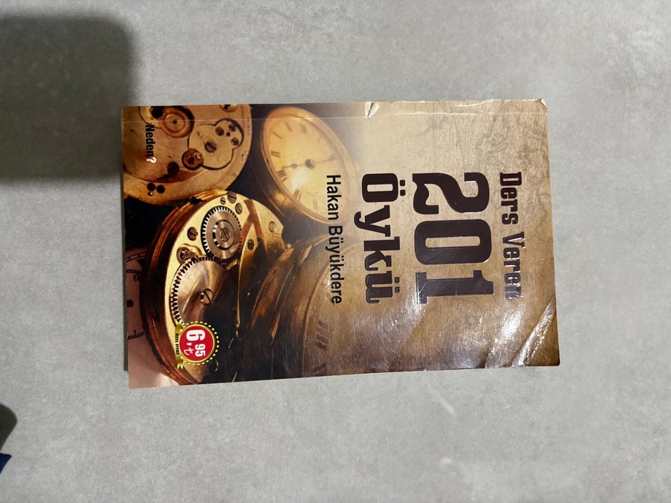 Hakan Büyükdere'nin "201 Öykü" kitabı, eski saat mekanizması görselleriyle kaplanmış bir hikaye derlemesi içeriyor.