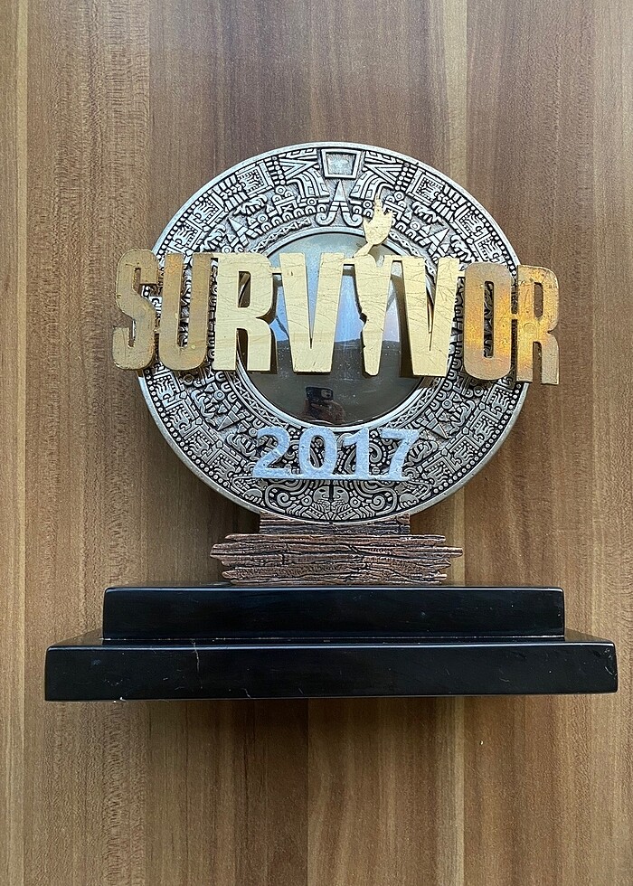 Fiyat doğru değildir . 55.000 dir 2019’da İstanbul müzayeden Koleksiyon için alınmıştır . 2010'lar üretimi, TV8 logolu "Survivor 2017" temali ödül objesi. Üst kismi gümüs kaplama dökümden yapilmis olup, üzerindeki kabartma "SURVIVOR " yazisi altin ve ‘’2017’’beyaz tonlarla islenmistir. Alt bölümü mermer kaide üzerine yerlestirilmis sutun formunda kompozit malzemeden olusmaktadir. Oldukça nadir bulunan bu obje, yarisma tarihinin simgesel bir parçasi olarak koleksiyon degeri tasimaktadir. Görseldeki tüm detaylar orijinaldir. Son alım fiyatı :50.000