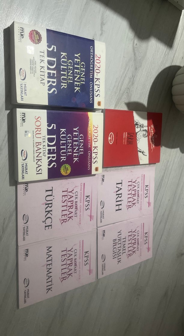2020 KPSS sınavına yönelik 5 ders soru bankası ve Türkçe, Matematik, Kültür, Yetenek, Tarih yaprak testleri içeren set. Cok az kullanıldı bazıları hıc kullanılmadı genel olarak temız önlisans kpss seti