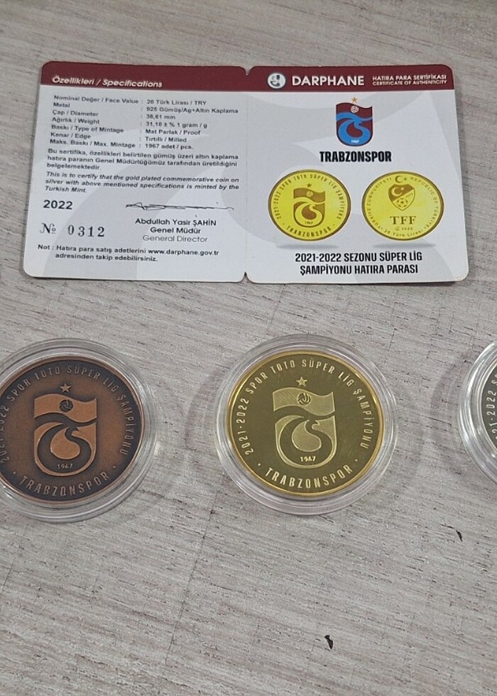 2021 - 2022 Sezonu Trabzonspor Şampiyonluk Hatira Parası SADECE 3000 ADET BASILMISTIR. DARPHANE SERTIFIKALIDIR.