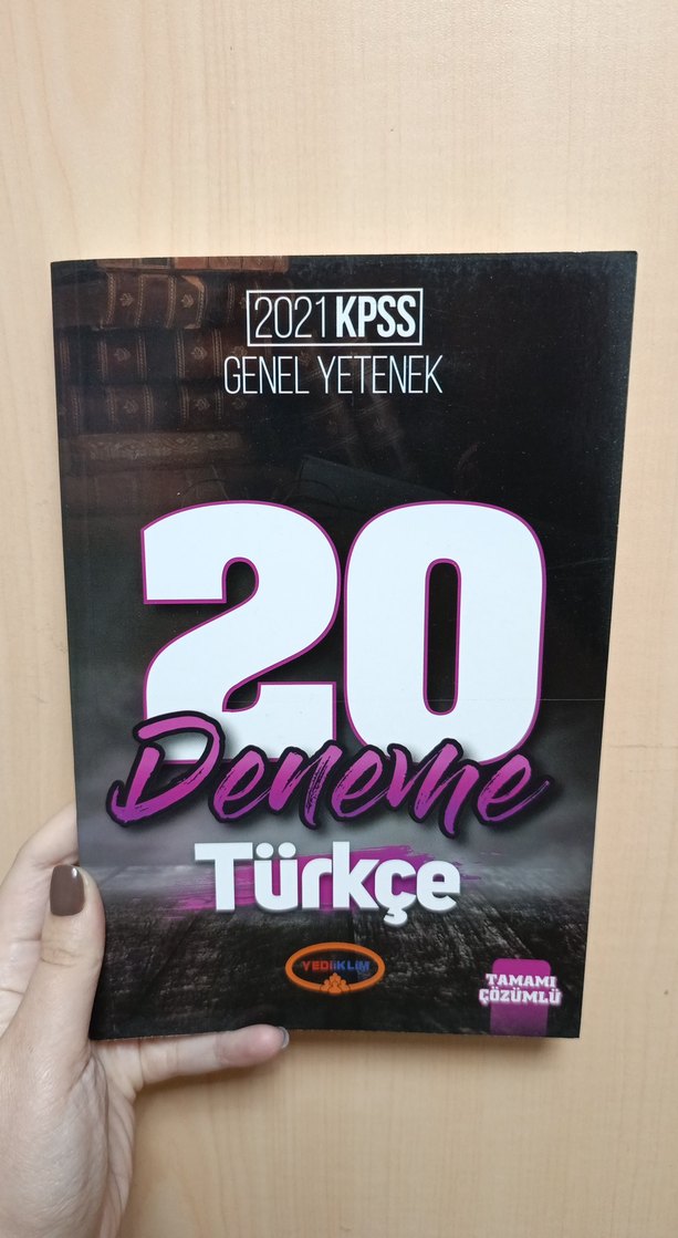 2021 KPSS Genel Yetenek sınavı için 20 adet Türkçe deneme ve tam çözüm içeren kitap.