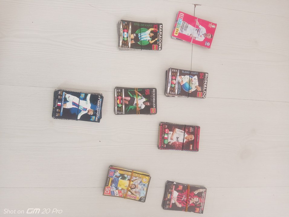 Çeşitli futbolcuların yer aldığı çok renkli futbol kartları seti, koleksiyon ve oyun için uygundur. ⚽