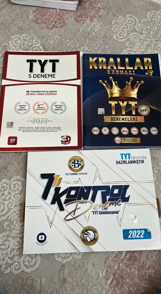2022 TYT denemeleri içeren 3 kitaplık set, detaylı video çözümleri ve simülasyon testleri ile hazırlanmıştır. Yayinlari eski odlugu icin fiyatlarini uygun tuttum hepsinin toplu fiyatidir