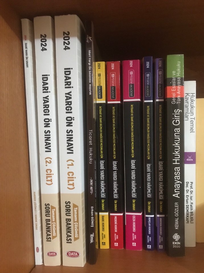 2024 İdari Yargı Ön Sınavı için soru bankası ve ticaret hukuku, anayasa hukuku gibi konuları içeren hukuk kitapları seti. Hiç kullanmadım, hepsi tertemiz duruyor. İşe girdiğim için sınava çalışmaktan vazgeçtim bu yüzden satıyorum.