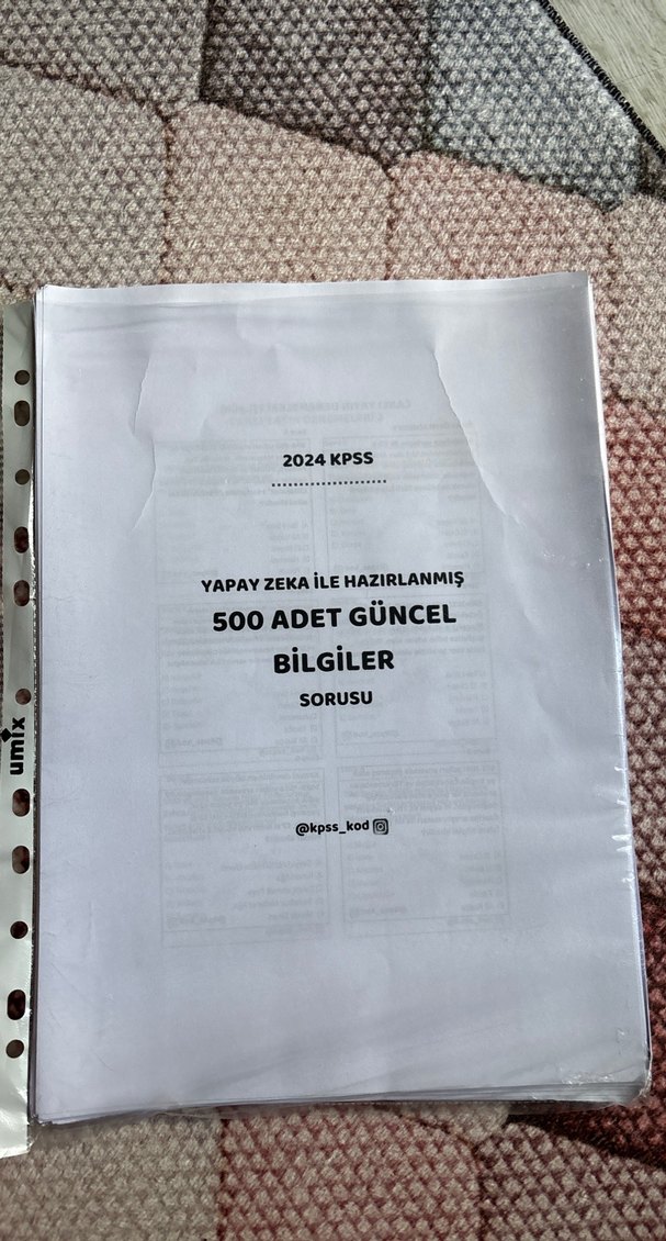 2024 KPSS için yapay zekâ ile hazırlanmış 500 adet güncel bilgi sorusu içeren soru bankasıdır. Tamamen boş içerisinde cevapları da mevcut