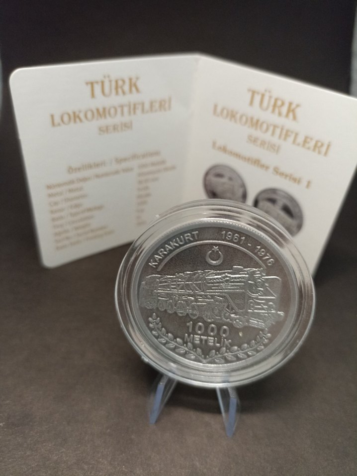 2024 yılında basılan, Türk demiryolu tarihinin efsaneleri Karakurt ve Bozkurt lokomotiflerini içeren özel hatıra madalyası seti. Orijinal sertifikası ve koruma kapsülü ile birlikte gönderilecektir. Sadece 1500 adet üretilmiş olan bu set, hem nümismatik hem de tarihsel koleksiyon yapanlar için kaçırılmayacak bir fırsattır. Nümismatik Değer: 1000 Metelik. Metal: Alüminyum Oksit. Basım Adedi (Tiraj): Sadece 1500 adet basılmıştır (Nadir) Baskı Yılı: 2024. Kondisyon: Kapsülünde ve sertifikalı olduğu için UNC (Çil) durumundadır.
