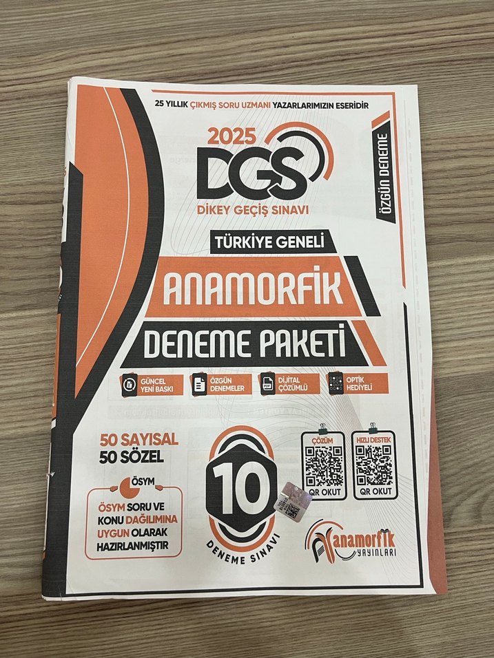2025 DGS Türkiye geneli Anamorfi̇k deneme paketi, ÖSYM soru ve konu dağılımına uygun 50 sayısal 50 sözel deneme içerir. 7 deneme var