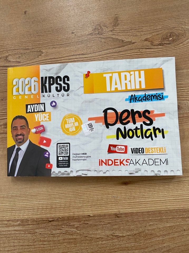 2026 KPSS Tarih ders notları, Aydın Yüce tarafından hazırlanmıştır. İndeks Akademi'nin YouTube videoları ile desteklenmiştir. Tüm konuları içerir.