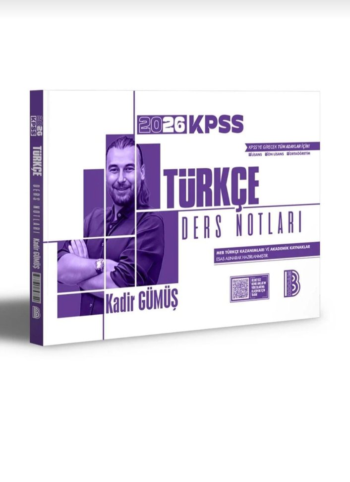 2026 KPSS Türkçe ders notları, Kadir Gümüş tarafından hazırlanmış, sınav hazırlığı için özlü ve anlaşılır içerik sunar. HİÇ KULLANILMADI. GÜNCELDİR.
