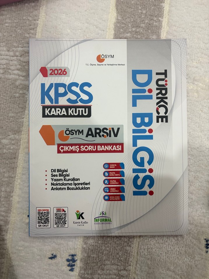 2026 KPSS Türkçe Dil Bilgisi kitabı; dil bilgisi, ses bilgisi, yazım kuralları, noktalama işaretleri ve anlatım bozuklukları konularında çıkmış soruları içerir.