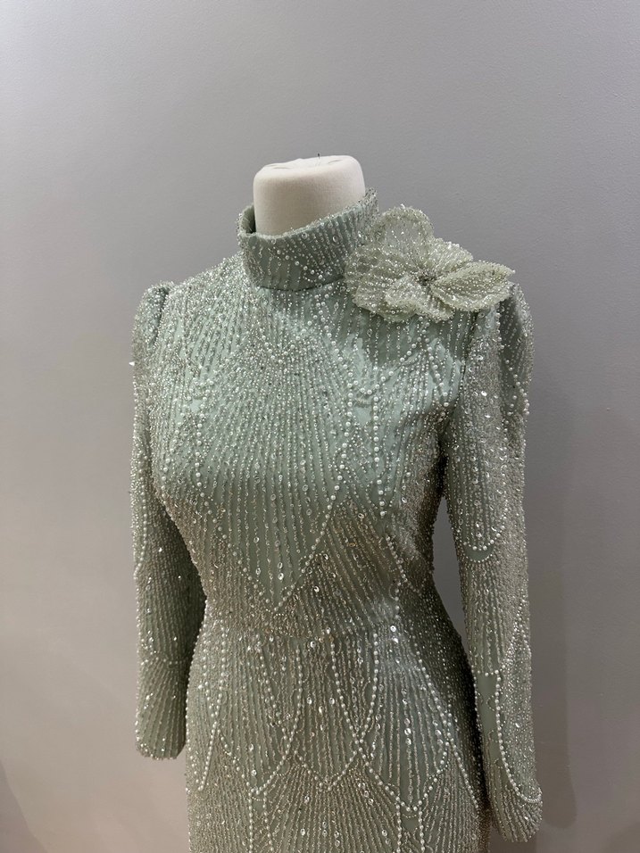 Ürün boyu 1.35 cmdir. Arkası iplidir. Göğüs 88 bel 78 basen 105 cmdir. 38-40 bedene uyumludur. Şalıyla beraber gönderim sağlanacaktır.Ürünün kiralama bedelidir
