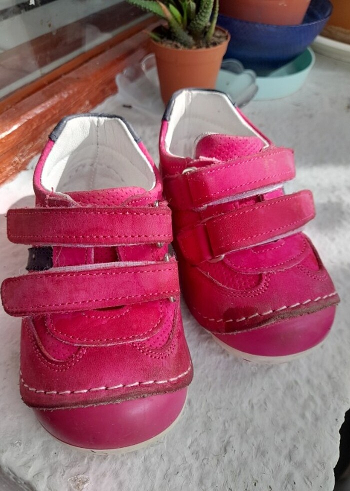 Ürün çok hafif ve rahattır. Hiç bir sorunu yoktur. 21 numara ve ortopedik bir ayakkabıdir. Önde leke gibi görünen şey sildiğim yer kurumadan acele fotoğraf çektiğim için var yani lekesi yoktur