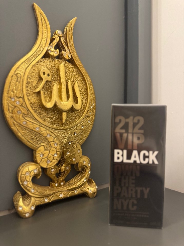 212 VIP Black, koyu altın renk temalı, avangart ve karşı kültür tarzında erkek parfümüdür. Ambalajda belirgin yazılar ve şık bir görünüm vardır.