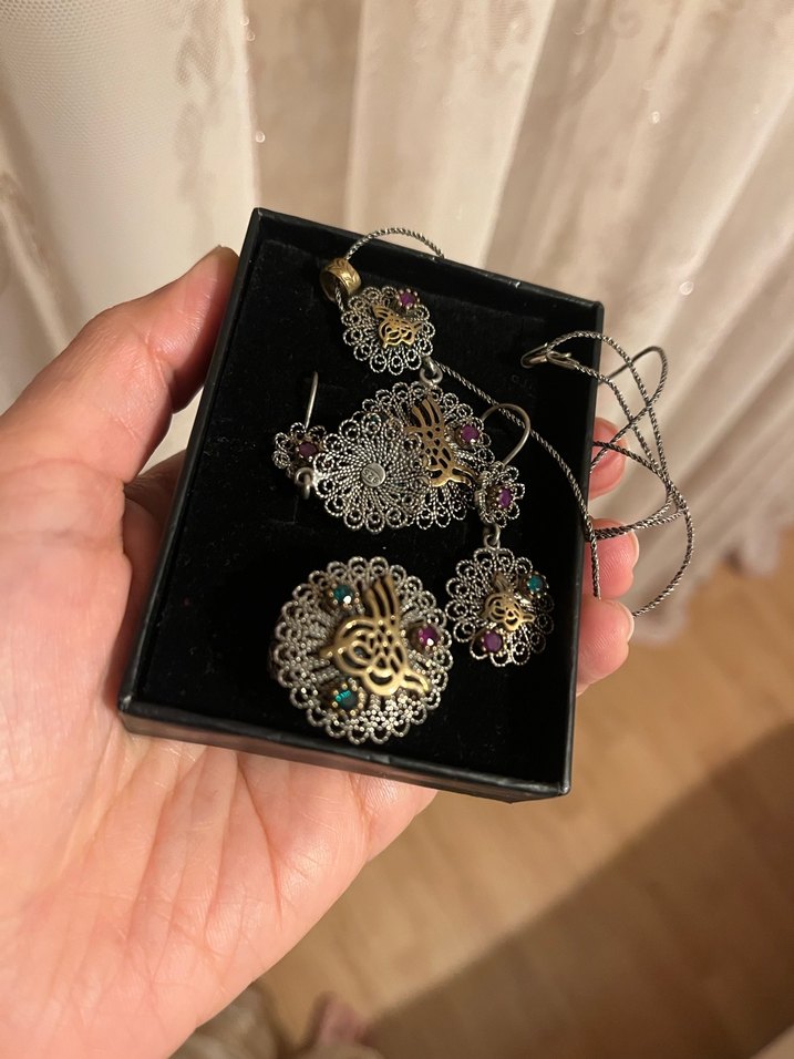 22 gram Gümüş (telkari) takı seti (kolye küpe yüzük)