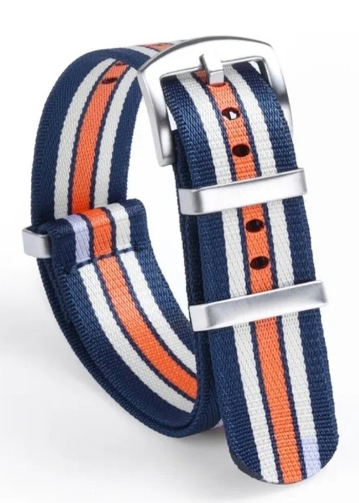 22 mm NATO KORDON Lacivert Turuncu BeyaZ Efsane Renk Uyumu Resimdeki Gibi OMEGA TAG HEUER SEIKO TUDOR Turuncu Mavi Renk Bezel Saatlere Çok Yakışır Metal Ksımları Son Derece Kaliteli Kullanışlı ve Kolay Kullanım