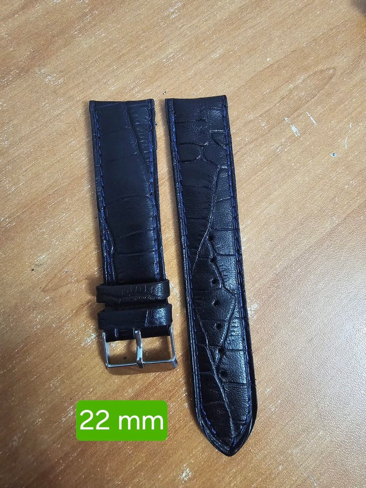 Yeni üründür. 22 mm genişliğinde, siyah klasik dokulu deri görünümlü erkek saat kayışı. lacivert dikişli son derece kaliteli içi dışı hakiki deridir.