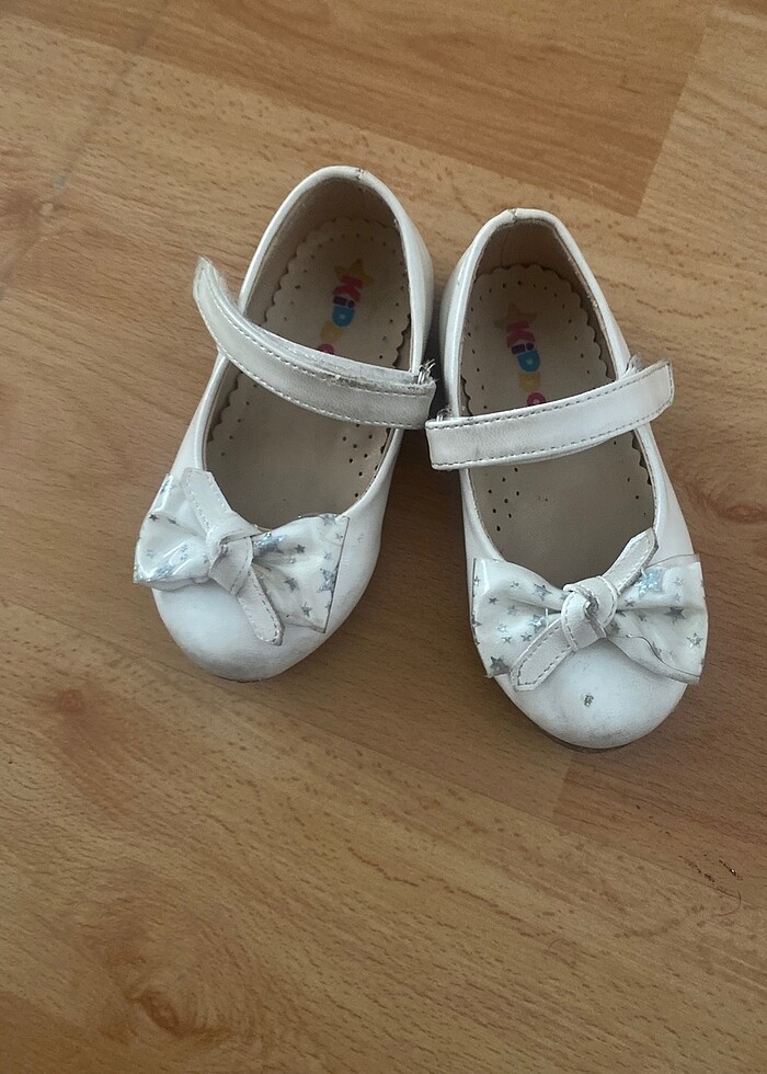 Ürün 2-3 defa giyildi kız çocuk ayakkabı 22 numara 2 yaşında kullandık ürün görseldeki gibi ön kısmında çizilmiş ancak kullanılabilir durumda defosu yok başka uygun fiyata ekledim