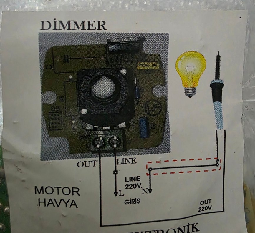 Dimmer devre kartı, LINE, OUT ve 220V bağlantıları için net işaretlere sahiptir. Elektrik ayarları için uygundur. 220 volt lamba , havya , motor gibi ürünleri hızlandırmak yavaşlatmak için kullanılır.