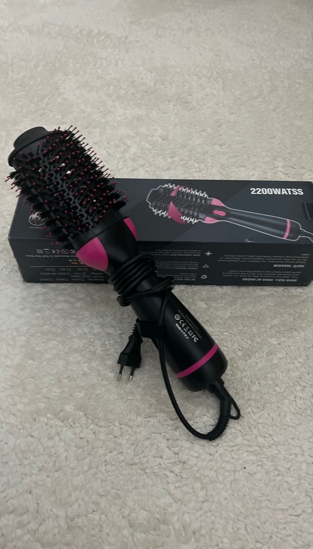 2200 watt gücünde, pembe ve siyah renkli saç şekillendirici fırça. Saç kurutma ve şekillendirme için uygun, uzun kabloya sahip. ♀️marka temsilidir