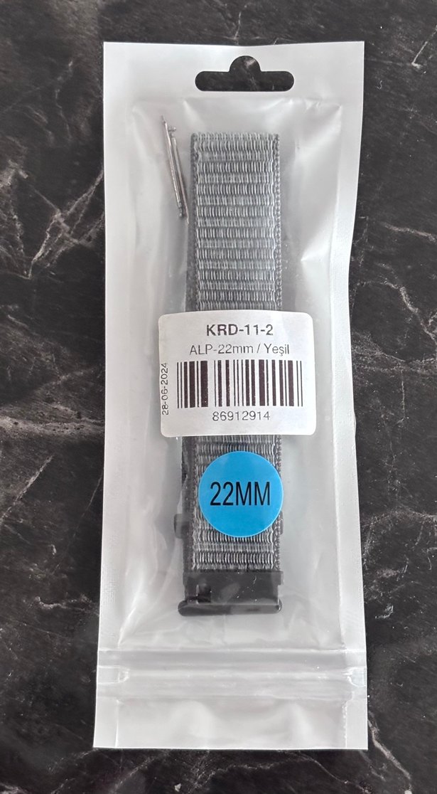 22mm genişliğinde gri renkte, dayanıklı dokuma akıllı bileklik kayışı. Kolay takma için pimler dahildir. ⚙️