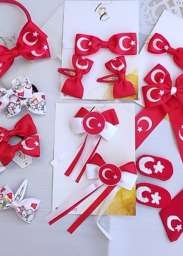 İLAN AÇTIRIN bu ilanı almayın Fiyatlar adet fiyatıdır. Stoklarla sınırlıdır. Toptan satış yoğunluk sebebi ile almıyorum. Ay Yıldız Örgü Çıt Çıt Toka 30 ₺ Taç 60 ₺ Papyon 30 ₺ Mini lastik çifti 30 ₺ Yuvarlak Bayrak Figürlü Klips Toka 30 ₺ Fiyonk Büyük Toka 60 ₺ (arkası klips veya lastik) Keten Kumaş Ay Yıldız 90 ₺ Bebek bandı 25 ₺