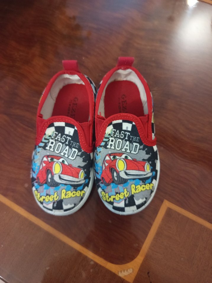 Kırmızı, baskılı desenli, renkli sokak tarzı erkek çocuk loafer ayakkabısı. Tokalı ve kauçuk malzemeden üretilmiştir. ️