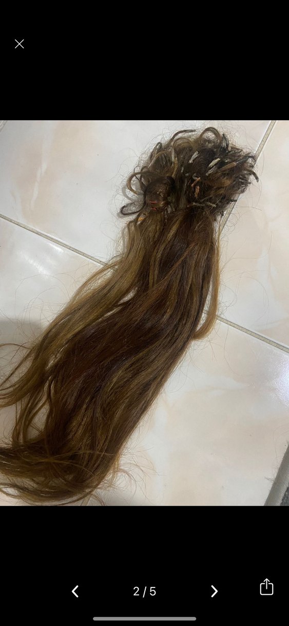Gerçek saç.bir kere kullanildi. Uclari yapili degil. 40-55cm arasi boyu. Katli saçlar da var arasinda hepsi ayni boy degil ama genelde uzun . Rengi çok dogal kahve arada igiltilari var sahane renk. Bagka saçlar da elimde mevcut profilime balabilirsiniz- iade kabul etmiyorum- tüm detaylari yazdim. Siz de ne isterseniz sorabilirsiniz ve detayli inceleyin lütfen - elimdeki diger saçlari da son fotoda ekleyecegim
