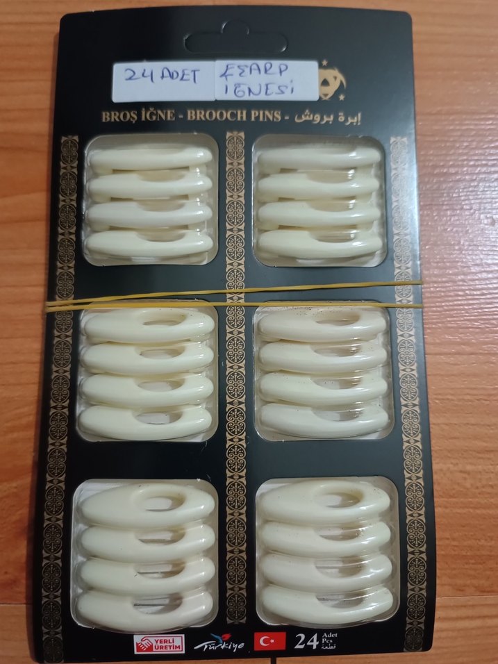 24 adet eşarp iğnesi ürünler hiç kullanılmadı paketlidir.