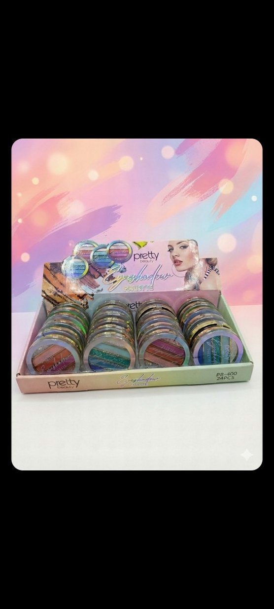 Pretty markasına ait pastel tonlarda çok renkli göz farı paleti, 24 adet far içerir ve çeşitli makyaj stilleri için uygundur.