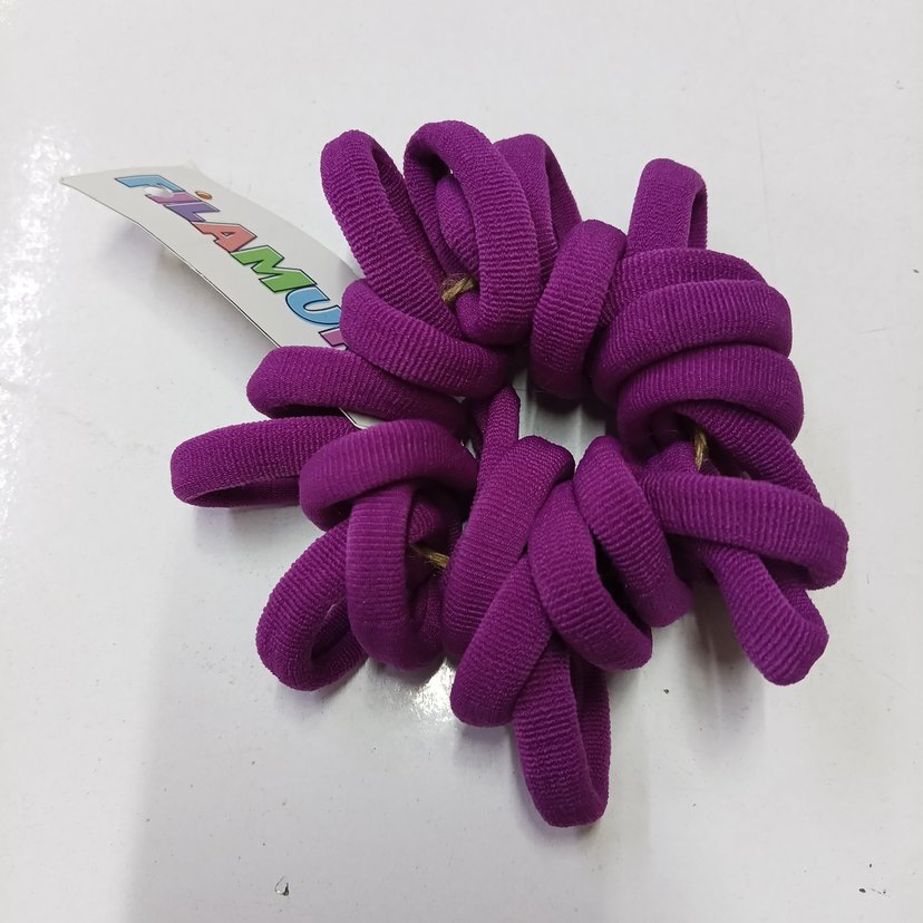 Çocuklar için elastik mor saç tokası seti, renkli batik desenli. Rahat ve temel tasarıma sahip.