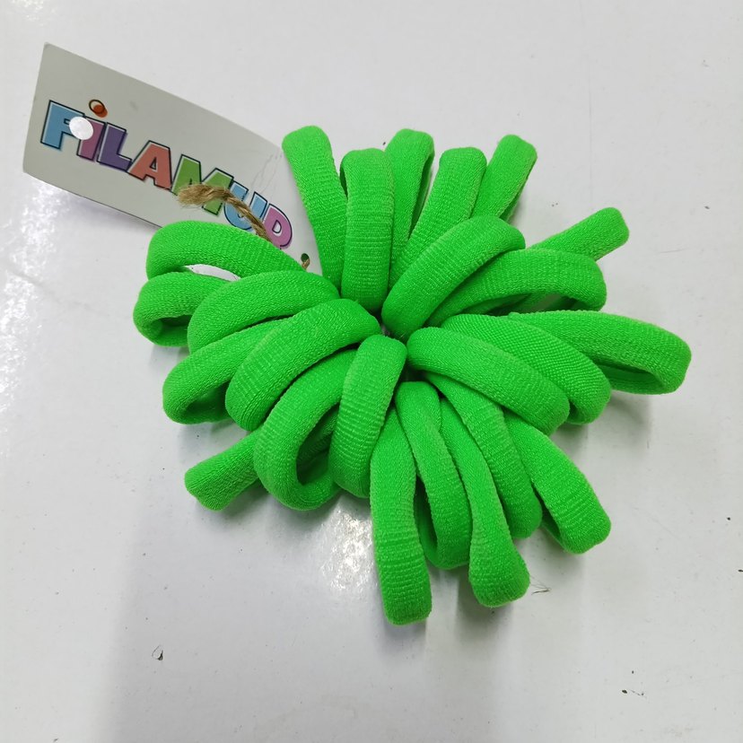 Çocuklar için bağlama lastikli, renkli yeşil saç tokaları. Bağlama deseniyle sade ve temel bir görünüm sunar.