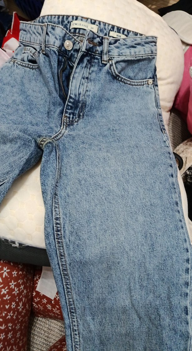 24 beden Gri Mavi Kadın Bol Kesim mom Denim Pantolon