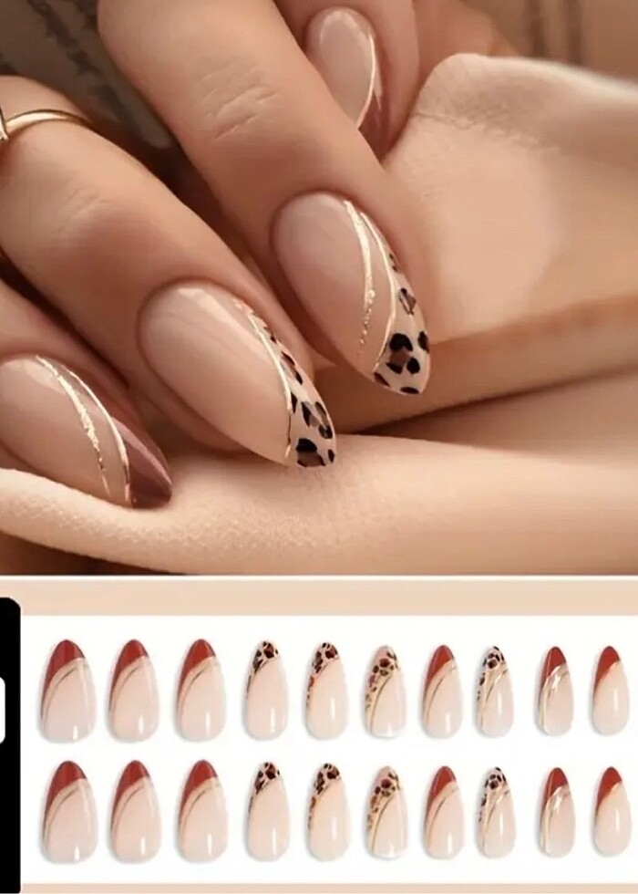 24 lü leopar detaylı takma tırnak