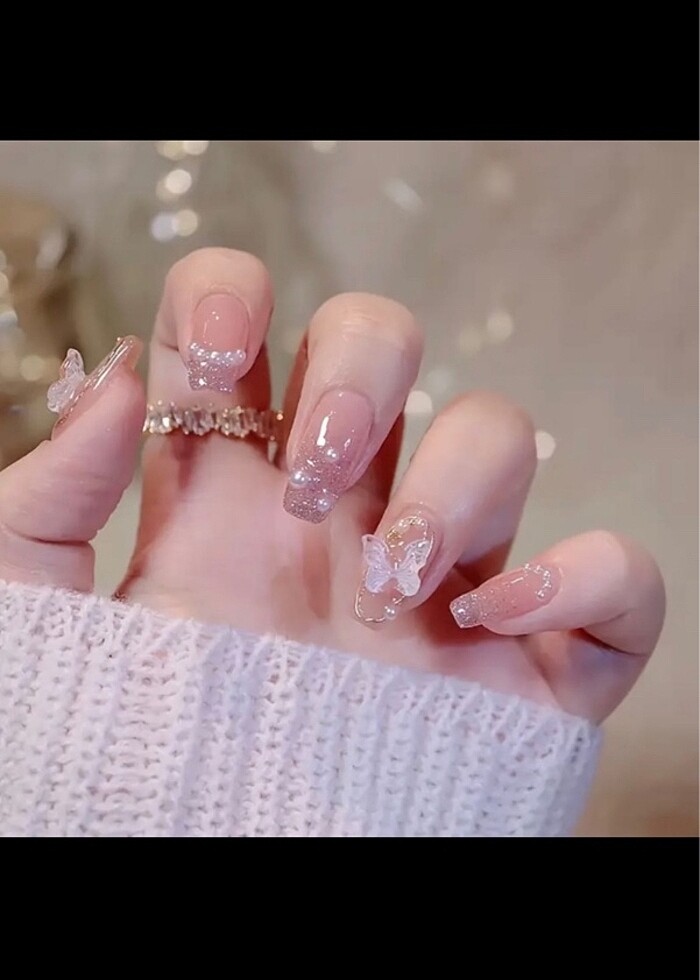 Ürün sıfırdır. Paketli gönderilecektir. 3D kelebek ve inci tasarımlı, pembe parlak glitterlı takma tırnak. Setin içerisinde 24 adet tırnak, 1 adet törpü, 24 adet yapışkan mevcuttur. Sayfamdaki diğer modellere de bakabilirsiniz .