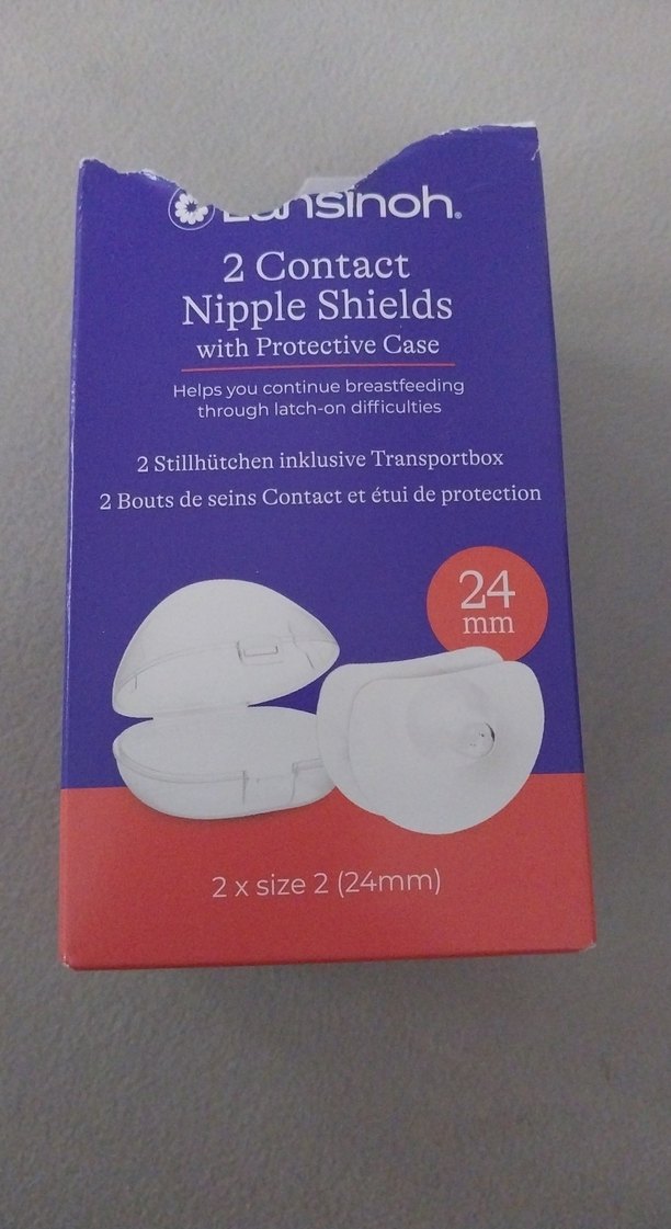 Lansinoh 24 mm boyutunda, 2 adet beyaz göğüs ucu kalkanı ve koruyucu kutu içerir. Emzirme zorluklarında destek sağlar. Taşınabilir kutu ile hijyenik kullanım sunar. açıldı 1 kare kullanıldı