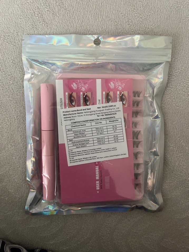 Temu takma kirpikler ve yapıştırıcı içeren set, holografik kilitli poşette paketlenmiştir. Göz görünümünü artırmak için kullanımı kolaydır. SATILDI